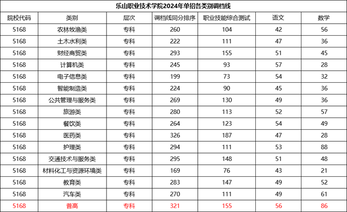 关键词:乐山,职业,技术,学院,2025年,单招,录取,分数线,