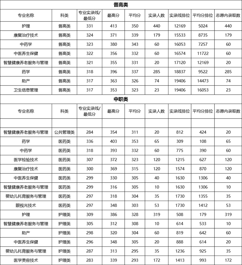 四川护理职业学院2024年高考文科调档线451分,理科调档线447分,单招调档线为317分,以下是24年单招各专业录取情况: