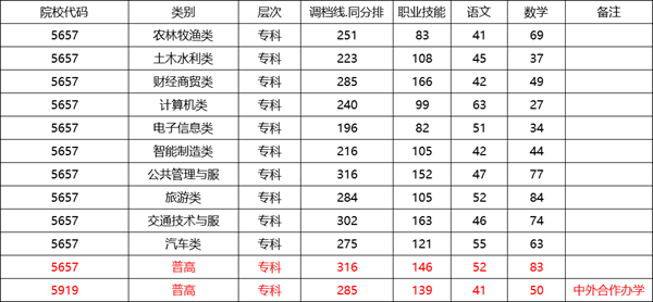 成都工业职业技术学院单招各类别最低调档线: