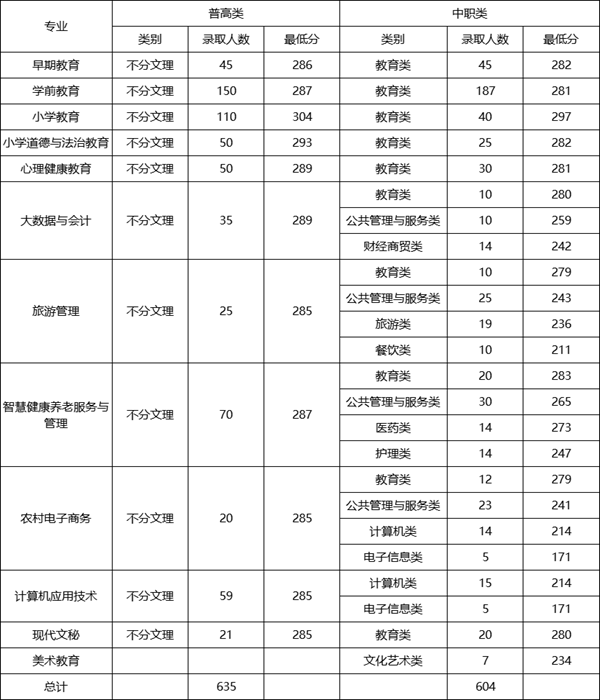- 四川幼儿师范高等专科学校25年单招录取分数线,01-09