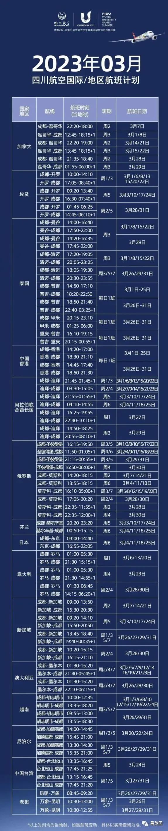 注:以上航班均为当地时间,如遇航班变动,请以实际查询为准。