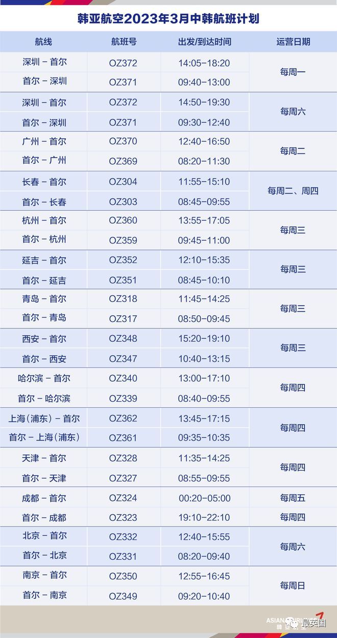 3月首尔(仁川)往返中国大陆地区详细航班计划如下,请旅客朋友务必仔细对照,以免影响您的行程: