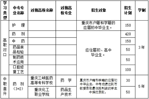 重庆市医药科技学校2025年招生简章,招生专业及招生计划一览表