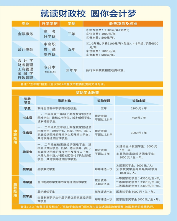 重庆财政学校2025年招生简章,招生专业及收费