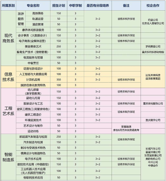 招生专业计划表