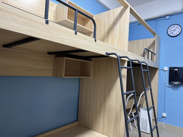 设施完善:宿舍内配备了基本的生活设施,如床、书桌、衣柜等,且床铺设计为上床下桌的形式,既保证了床铺的舒适性,又让每位学生都拥有独立的学习空间。此外,宿舍还配有空调,确保学生在不同季节都能有一个舒适的生活环境。