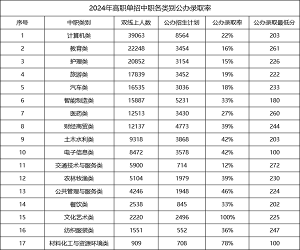 2024年四川单招各类别录取率: