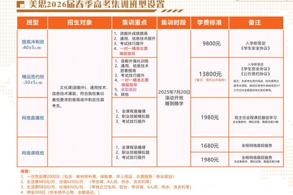 摘要:距26年单招考试还剩6个多月时间,成都美思单招培训学校国庆期间推出交100抵1000的学费减免活动,现联系我校招生办吴老师即可享受18382252107(微信同号)! 美思单招培训学校是四川省最早的一批专做高职单招培训的教学机构,因为专业,所以卓越!近年以来,学校升