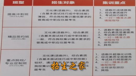 2019年该校高职单招集训考生一次性上线率达96%。其中,尤其以“精品签约班”为亮点,该班考生全部上线并录取到省内部分国家(省)级示范(骨干)高职院校。