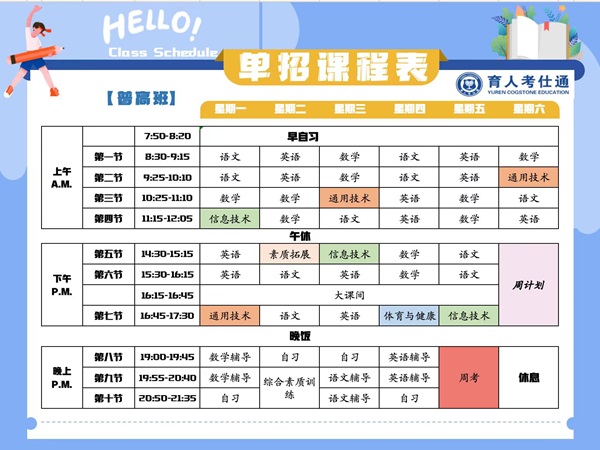 四川考仕通单招培训学校“普高类”和“中职类”课表有没有