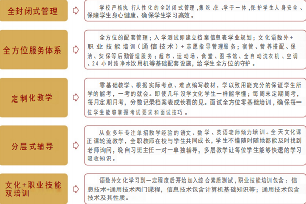 成都首创单招培训学校是一所专注于高职单招考前培训的机构,拥有丰富的培训内容和专业的师资力量。我校高职单招培训班内容涵盖语文、数学、英语、通用技术和信息技术等课程。