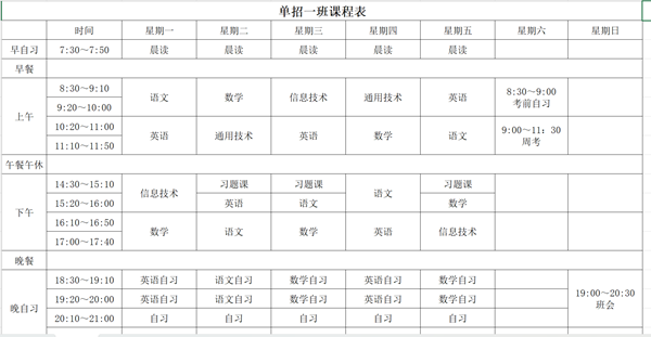 成都美思单招培训学校2025年单招集训班开设课程包含:单招文化(语文、数学、英语)和单招综合素质(通用技术和信息技术)等培训内容,以下是关于集训班课程表及管理模式介绍: