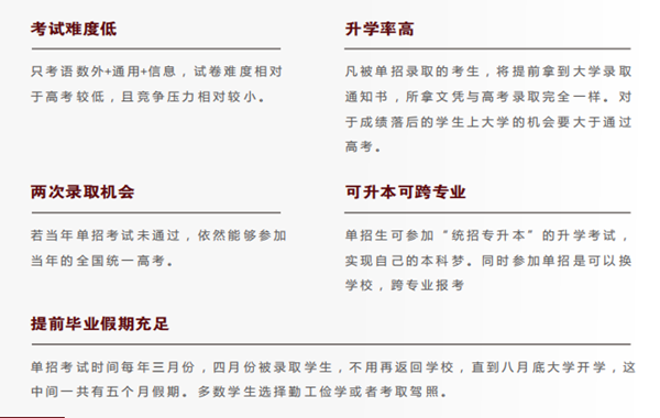 摘要:四川师涛单招培训学校专注四川高职单招培训8年,采用科学的教学方法和系统的培训体系。在教学过程中,师涛单招培训注重培养学生的解题思路和技巧,通过大量的真题演练和模拟考试,让学生熟悉考试流程,提高应试能力。许多考生在师涛的帮助下,成功实现了成