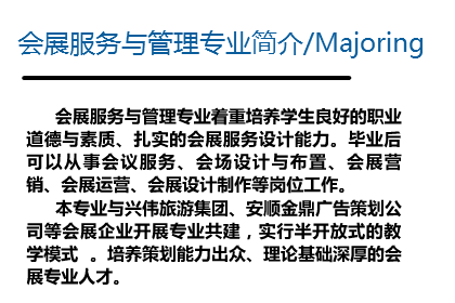 摘要:安顺职业技术学院会展服务与管理专业招生
