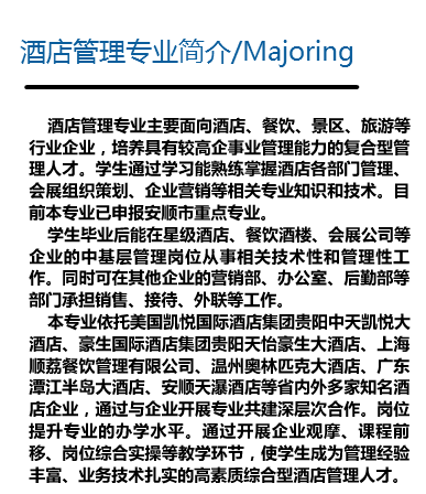 摘要:安顺职业技术学院酒店管理专业招生