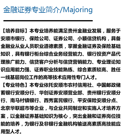 摘要:安顺职业技术学院金融证劵专业招生