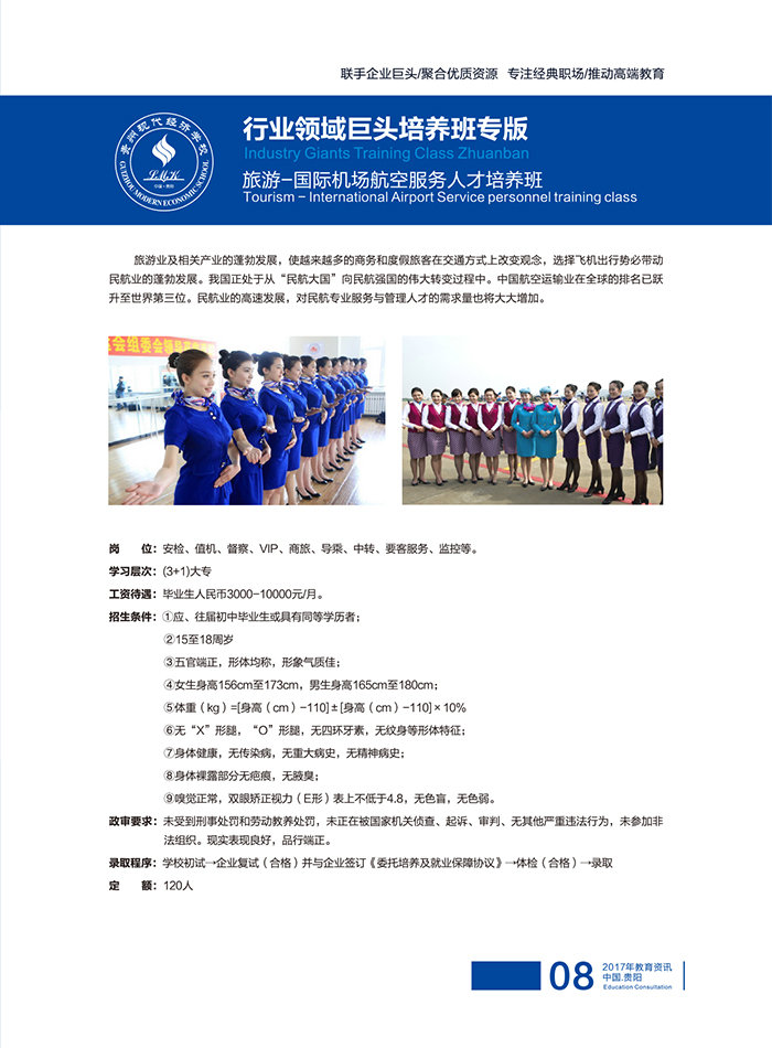 2021年贵州现代经济学校旅游航空专业招生